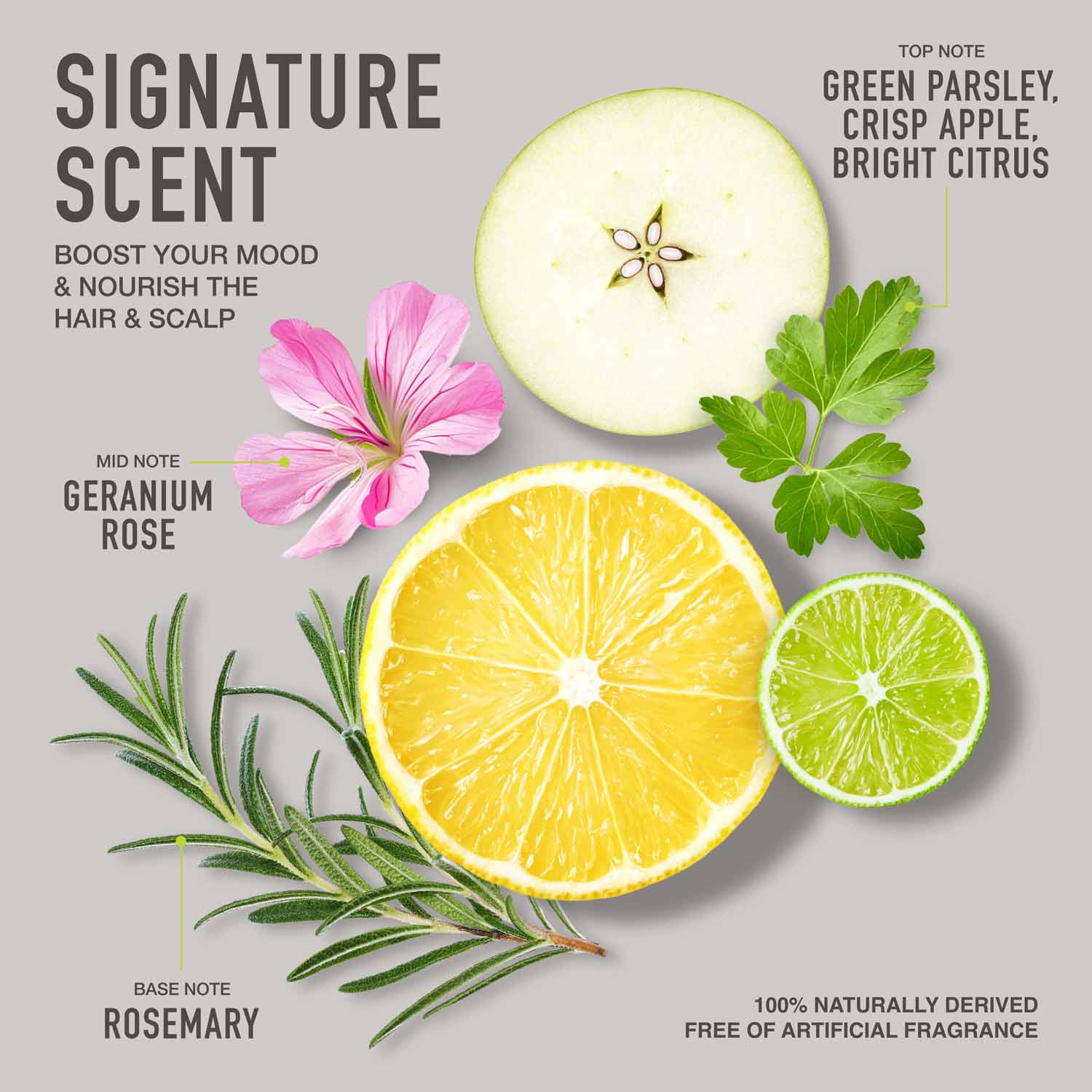 All Silverist formulas are free of artificial fragrance and contain natural fragrances only. Silverist's signature fragrance is designed to boost the mood and nourish the hair and scalp. The natural ingredients that give the product its scent are citrus, apple, green parsley, geranium rose, lily of the valley, rosemary, and sage clary.